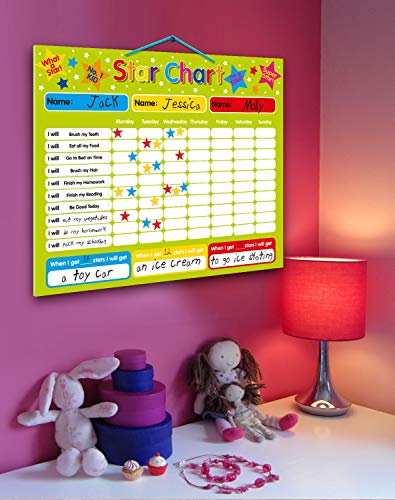 Indigo Worldwide Ltd - Star Chart, Tavola Magnetica premiabimbi, Ideale Fino a 3 Bambini Tavola Rigida 40 x 30 cm, fornita di Gancio per Appendere alla Parete