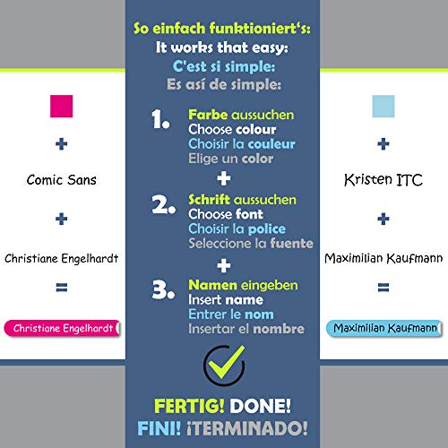 Finalmente tornate online. INDIGOS UG - Adesivi per nome, 51 x 7 mm. Riceverete 135 pezzi con il nome, motivo, colore e base a scelta.