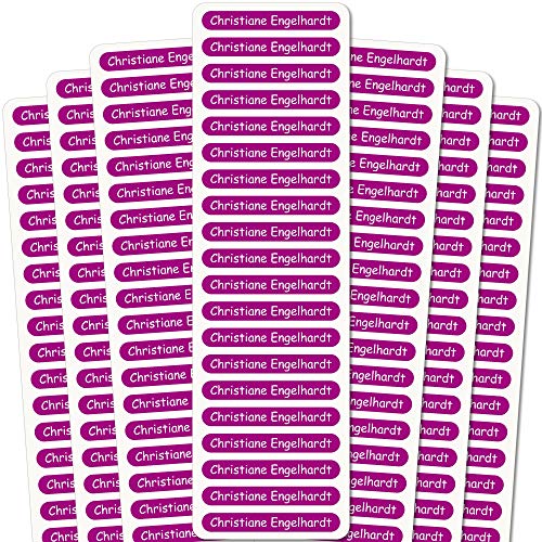 INDIGOS UG®, adesivi con nome - 51 x 7 mm - 140 pezzi per bambini, scuola e asilo - penne, astuccio, righello - sfondo viola - stampa individuale