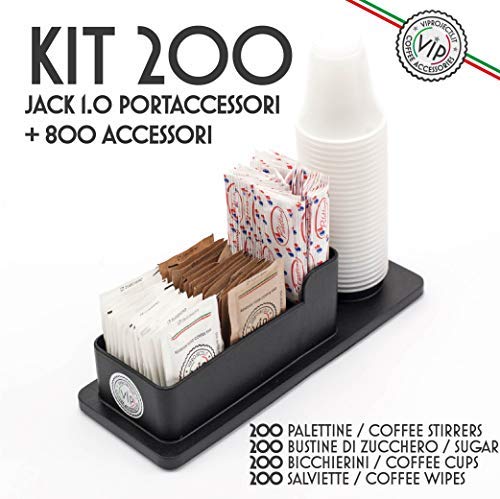 Indispensabile KIT ACCESSORI CAFFE' Extra Large 200 Bicchieri Professionali, Zucchero, Palette. Compreso Elegante Portaccessori VIP