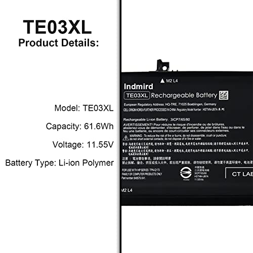 Indmird 61.6Wh TE03XL Batteria per HP Pavilion 15 Omen 15-BC000 15-BC015TX BC400NA BC006NA BC407TX BC408TX 15-AX033DX AX009NA AX001TX TPN-Q173