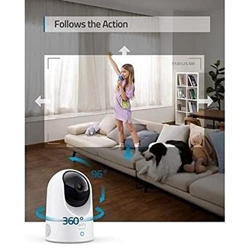 Eufy Indoor Cam 2K Pan & Tilt Home Security Camera per la sorveglianza interna, umana e Pet AI, funziona con Assistenti vocali, Motion Tracking, Visione Notturna, Bianco