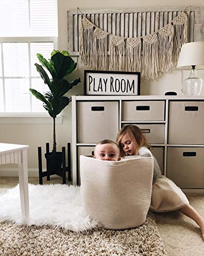 Indressme Baby portabiancheria extra large Nature cotone corda portabiancheria cesta portaoggetti pattumiera nursery Baby Toys contenitori per pannolini, 40,6 x 38,1 cm, grigio scuro