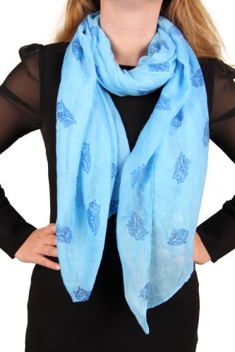 Indumento da donna per ogni stagione, casual, feste, ufficio, alla moda, sciarpa alla moda, blu turchese, con stampa di gufi, 100% poliestere, 100 x 180 cm (lunghezza x larghezza x altezza) 2000, Blu