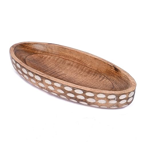 Indus Lifespace Ciotola decorativa in legno di mango per centrotavola, sala da pranzo, soggiorno, casa e cucina (35,56 cm x 15,24 cm x 5,84 cm)