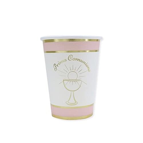 INDUSTRIA delle FESTE IDF Coordinato Tavola Piatti Party tema Comunione Chic Rosa, kit festa 8 ospiti 45 pz