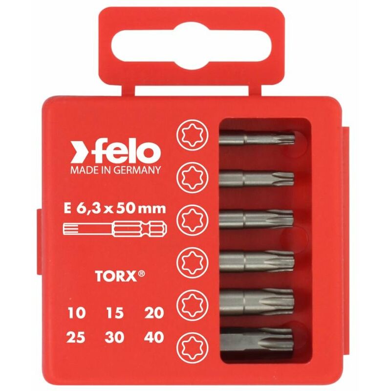 Box Bit Profi (6 bit) TX, strumento di avvitatura realizzato con precisione in acciaio ad alte prestazioni speciali, più alta durezza e valori di coppia- ben al di sopra degli standard DIN e ISO Contenuto: 1 bit TX 10, TX 15, TX 20, TX 25, TX 30, TX 40