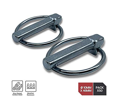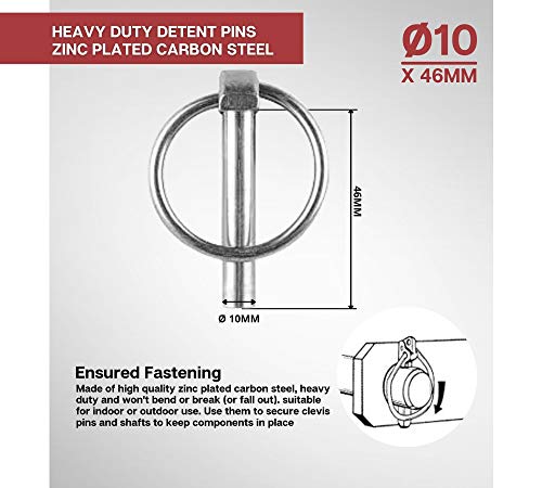 Rondelle Acciaio | Assortimento Coppiglie 50 Unità | Coppiglia ad anello | Diametro: 10mm | Lunghezza: 46mm | Spinotti a scatto in Acciaio Galvanizzato con finitura in Zinco | Impiego: Anelli di Traino o Fissaggio per Carrozzeria, Macchine Agricole, Trattore Agricolo, Cupiglie a Molla come Pezzi di Ricambio, Gancio Traino Auto, Perni di sicurezza | Ambito: Fai da Te Ferramenta, Idraulico.