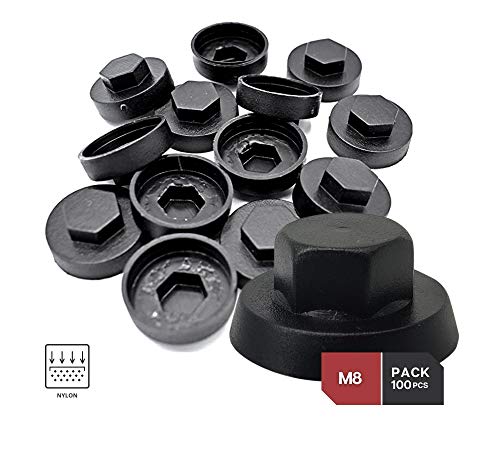 DOJA INDUSTRIAL | Coprivite Esagonale | Chiave 8mm | 100 Pezzi | Materiale: Copri Viti in Nylon | Tappi per Bulloni Colore Nero | Uso: Cappucci Protettivi per Chiodi e Dadi Esagonali | Uso Esterno