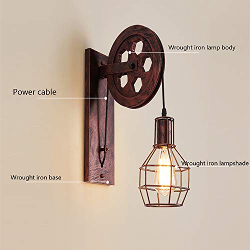 Loft Industrial Retro Wall Lamp Single Head Lifting Pulley Light Fixture,B