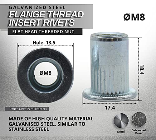 DOJA Industrial | Rivetti Filettati Acciaio Galvanizzato | M8 | 50 Pezzi | Dadi per Rivettatrice con Inserti Filettato | Set Dadi Attrezzatura Officina per Fissare Tubi Innocenti, Metallo e Alluminio