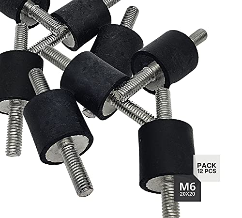 DOJA INDUSTRIAL | Silent Block M6 | 20x20 | Maschio-Maschio | 12 Pezzi | Supporti Gomma Antivibrazione Condizionatore | Antivibranti in Gomma + Acciaio | Gommini Antivibrazione Condizionatore