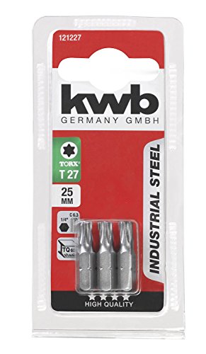 Kwb 3 x Bits 25 mm TORX 27 Industrial Steel 121227 (acciaio TQ 60, ISO 1173, drive C 6.3)