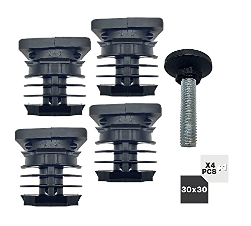 DOJA INDUSTRIAL | Tappo Filettato Quadrato + Piede Regolabile | Tappo Quadrato 30x30 + Piedini Regolabili M8 | 4 Pezzi | Tappi Tubi Quadrati | Tappi Quadrati Regolabili | Tappi Terminale Di Plastica