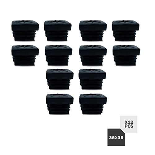 DOJA INDUSTRIAL | Tappo Filettato Quadrato + Piede Regolabile | Tappo Quadrato 35x35 + Piedini Regolabili M10 | 12 Pezzi | Tappi Tubi Quadrati | Tappi Quadrati Regolabili | Tappi Terminale Di Plastica