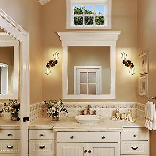 Industriale Applique da parete Rustico muro luci Wire Cage Regolabile E27 Socket Edison Vintage metallo retrò Lampade per camera da letto Gazebo (senza lampadina) (con 2 luci) (colore Bronzo)