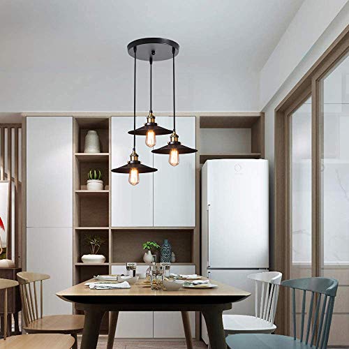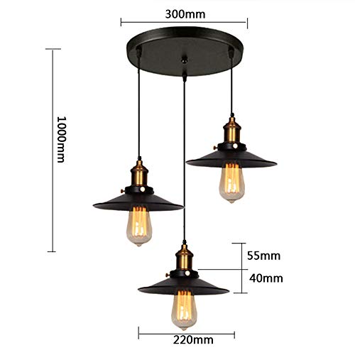 E27 Industriale Edison Retro Nero Lampada a Sospensione, Classica Lampada a Soffitto Paralume in Metallo, Plafoniera in Stile Vintage Lampadario Per Sala Bar Ristorante Ufficio,Ø22cm,3 luci