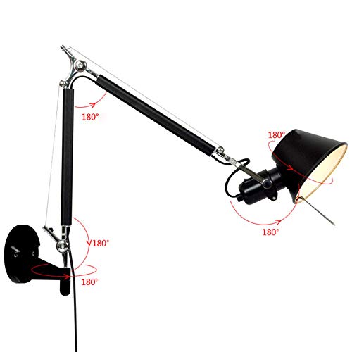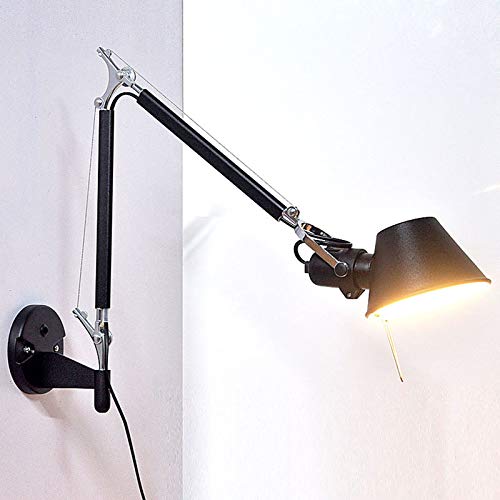 VOMI Industriale Parete da Lampada Pieghevole E27 Regolabile Lungo Braccio Metallo Applique da Parete Interni Retro Con Interruttore Luce la Lettura per Loft Soggiorno Ristoranti Nero