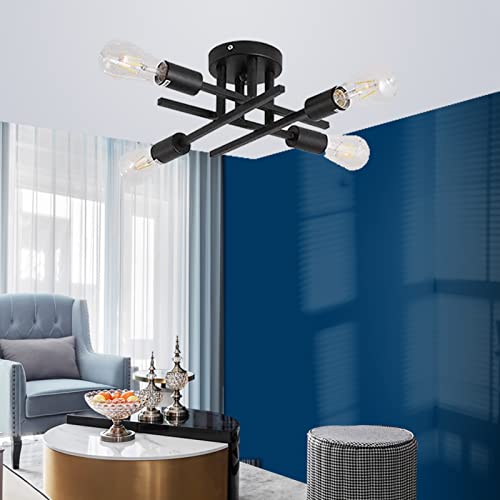 Industriali Lampada Nero Sputnik da Soffitto Vintage LED 4 Luci Plafoniera E27 Moderna Metallo Lampadario per Soggiorno Cucina corridoio Camera da Letto Sala da Pranzo hotel caffè ristorante