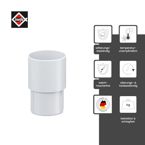 INEFA Connettore per pluviali Plastica, bicchiere per pluviale, bicchiere di collegamento, bicchiere a innesto, bicchiere per pluviale, diramazione, raccordo, grondaia DN 75 Bianco