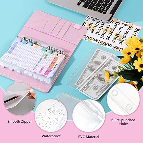 Infankey Budget Planner, 6 fori in pelle PU, con fogli di budget, taccuino, agenda budget, organizer per soldi, risparmio di denaro, carte di credito, luce stellata rosa