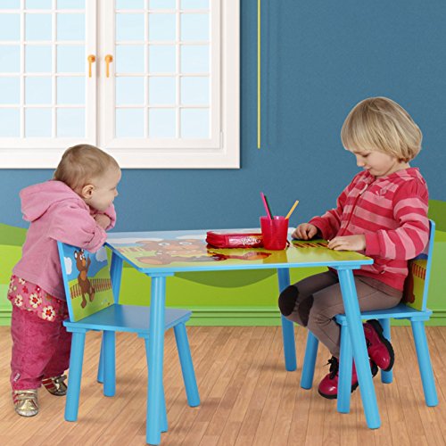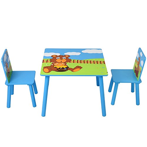 Infantastic Tavolo e sedie bambini cameretta set tavolo con 2 sedie colore blu di legno