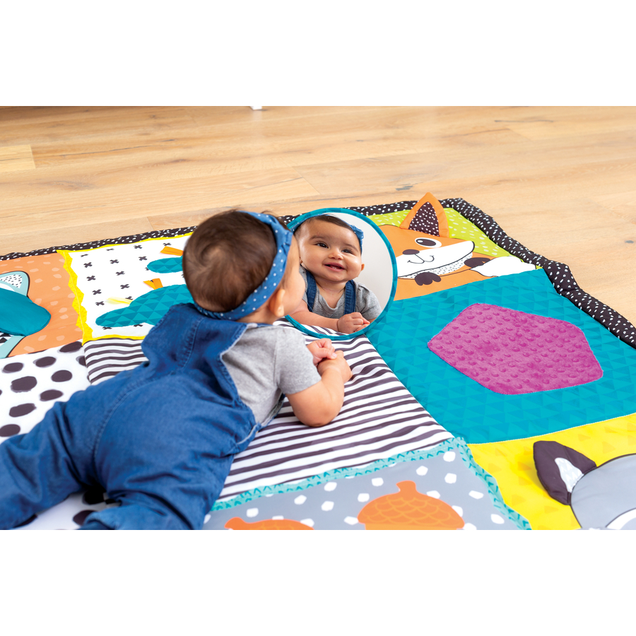 Dettagli del prodotto: Dal momento del pancino ai primi passi, questo tappetino per attività di spessore extra crea un luogo sicuro e delicato per i giochi del bambino a casa o in viaggio. Le superfici multitessuto consentono un'interazione sensoriale precoce e le attività integrate incoraggiano il gioco. Materiale e cura: Lavare in lavatrice a 30°. Incluso nella consegna: Infantino Tappetino da gioco Jumbo pieghevole e trasportabile
