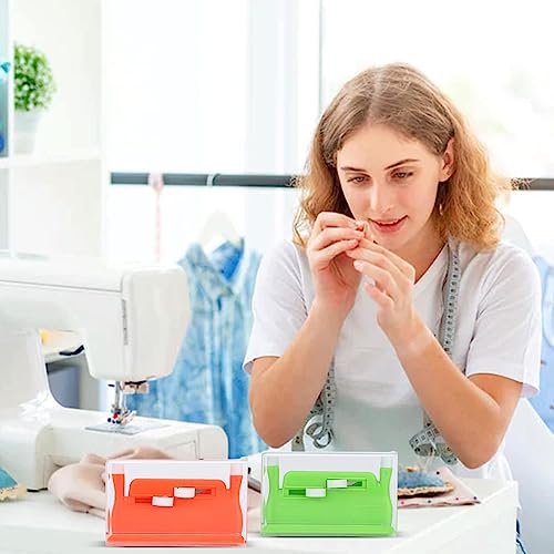 2 PEZZI INFILA FA AUTOMATICO SET: Il set include 1 infila ago infila arancione, 1 infila verde e 10 aghi,infila aghi automatico permette a più persone di utilizzare, puoi cucire vestiti fai da te e borse di tela