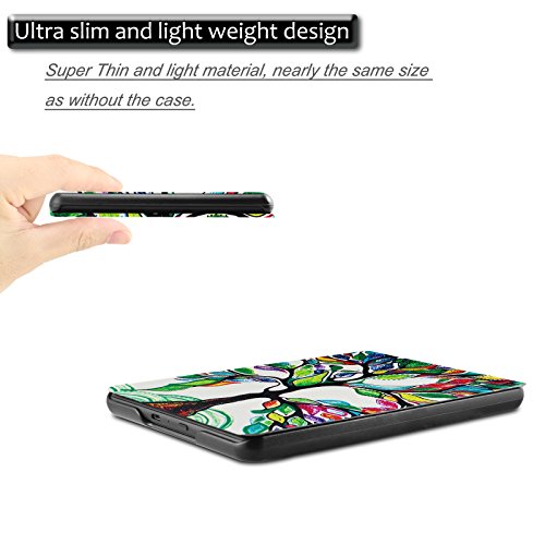 Infiland Custodia per Kindle 8 Generation- Slim Folio in pelle Smart Ultra sottile e leggera Case Cover Custodia per All new Amazon Kindle (8.Generation - 2016 Modell) 6 pollici eReader (con Auto Sonno/Veglia Funzione)(Albero Felice)