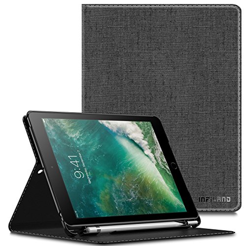 INFILAND Supporto Frontale Custodia per iPad 9.7 Pollice 2018 Version (Auto Sonno/Veglia, con Protettivo Portapenne),Grigio