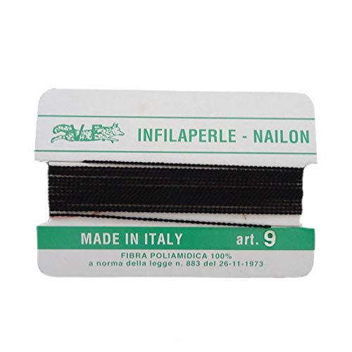 Filo infilaperle con ago colore nero in nylon per collane bracciali nailon varie misure (9) (1,1 mm)