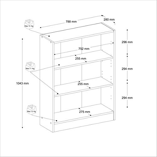 Spazio disponibile: 3 scaffali ad altezza regolabile per tenere in ordine i tuoi libri e oggetti decorativi