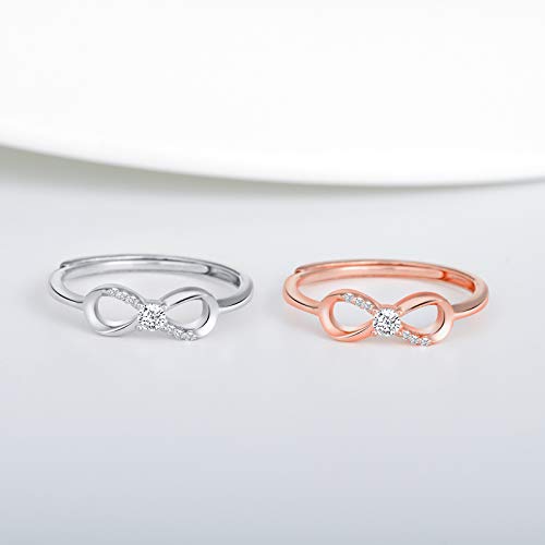 INFINIONLY Anelli aperto da donna ragazza, Anelli regolabile in argento sterling 925, anello simbolo dell'infinito, anello nuziale, intarsio in zirconio, anello di fidanzamento