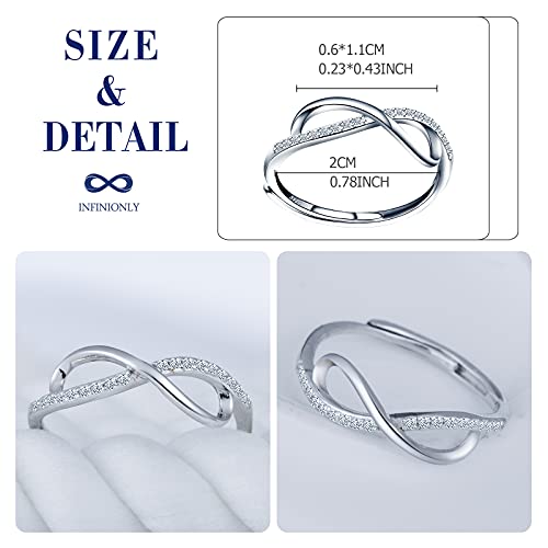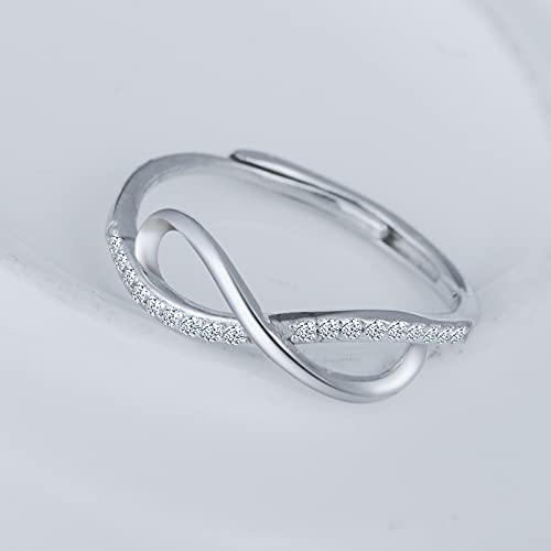INFINIONLY Anelli da donna, anello in argento 925, anello simbolo infinito, zircone intarsiato, anelli di fidanzamento, anello aperto, misura regolabile, circonferenza del dito adatta:48,5-57mm