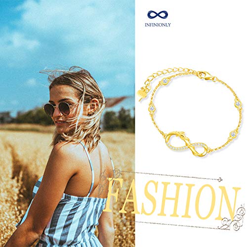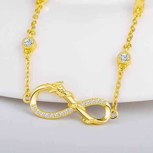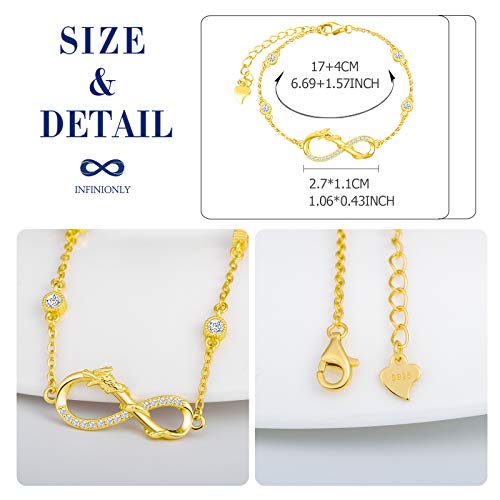 INFINIONLY Bracciale da donna ragazza, Parure di gioielli Bracciale in argento sterling 925, bracciali simbolo dell'infinito e drago, intarsio in zirconio, oro