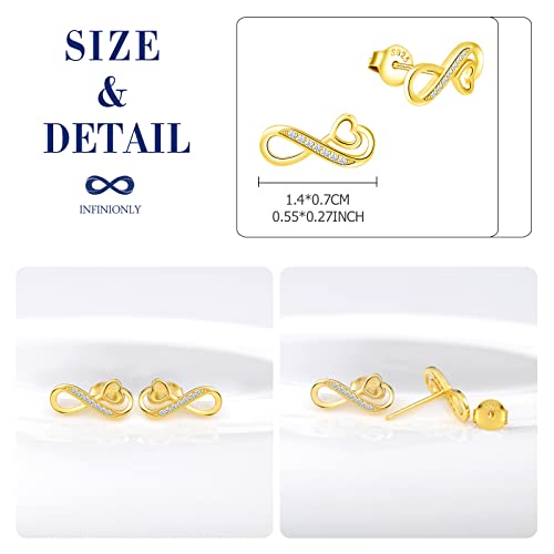 INFINIONLY Collana Bracciale Orecchini da donna, collane bracciali orecchini in argento 925, simbolo infinito intarsiato con cuore, Parure di gioielli donna ragazza, zircone intarsiato, oro