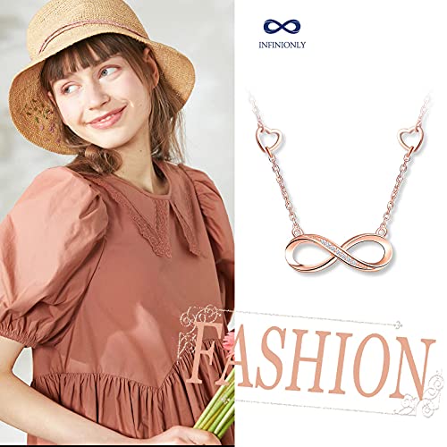 INFINIONLY Collana Bracciale Orecchini da donna, collane bracciali orecchini in argento 925, simbolo infinito intarsiato con cuore, Parure di gioielli donna ragazza, zircone intarsiato, oro rosa