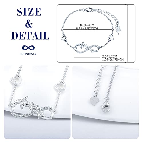 INFINIONLY Collana Bracciale Orecchini da donna, collane bracciali orecchini in argento 925, simbolo infinito intarsiato con ape carina, Parure di gioielli donna ragazza, zircone intarsiato, argento