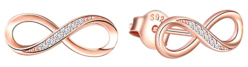 INFINIONLY Collana Bracciale Orecchini da donna, collane bracciali orecchini in argento 925, simbolo infinito intarsiato con cuore, Parure di gioielli donna ragazza, zircone intarsiato, oro rosa