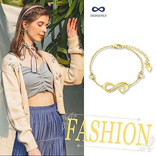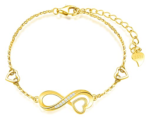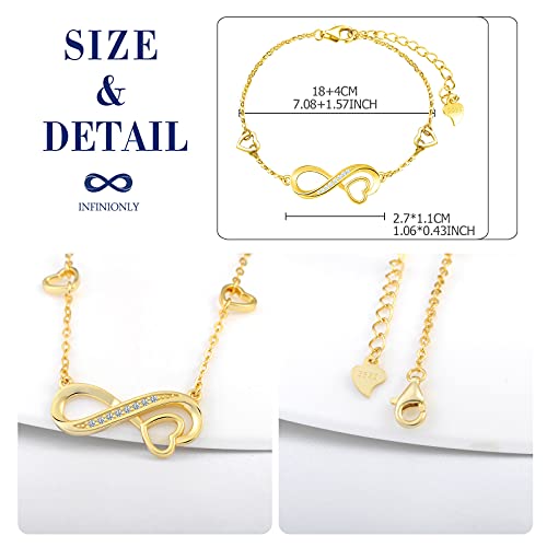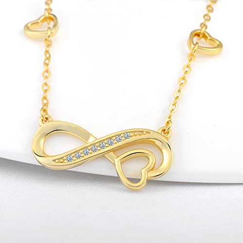 INFINIONLY Collana Bracciale Orecchini da donna, collane bracciali orecchini in argento 925, simbolo infinito intarsiato con cuore, Parure di gioielli donna ragazza, zircone intarsiato, oro