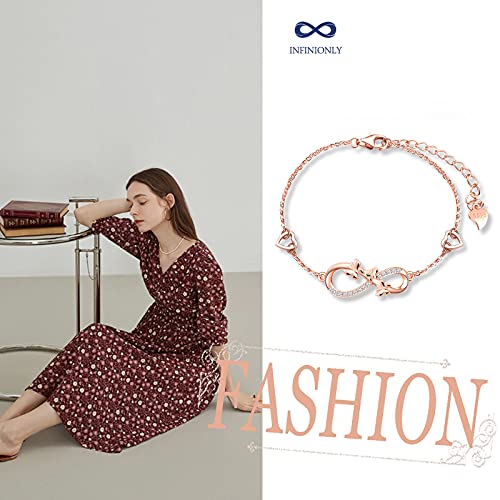 INFINIONLY Collana Bracciale Orecchini da donna, collane bracciali orecchini in argento 925, simbolo infinito intarsiato farfalla, Parure di gioielli per donna ragazza, zircone intarsiato, oro rosa