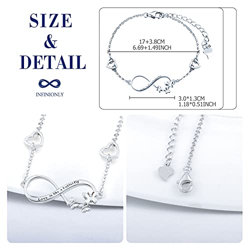 INFINIONLY Collana Bracciale Orecchini da donna, collane bracciali orecchini in argento 925, simbolo infinito intarsiato con eleganti farfalla, Parure di gioielli donna, zircone intarsiato, argento