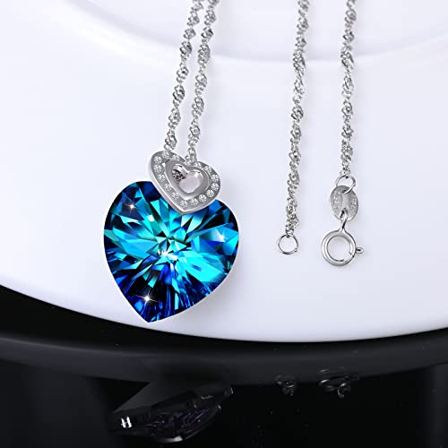 INFINIONLY Collana di cristallo Cuore dell'Oceano, Pendente cuore da donna, in argento 925, Collana di cristalli blu oceano, con mini cuore, intarsiato con zircone lucido, Lunghezza catena 45cm