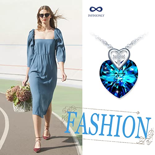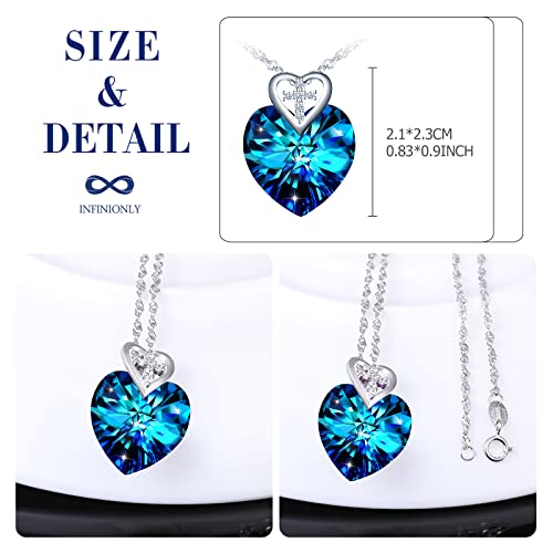 INFINIONLY Collana di cristallo Cuore dell'Oceano, Pendente cuore da donna, in argento 925, Collana di cristalli blu oceano, con mini cuori e croci, zircone lucido, Lunghezza catena 45cm