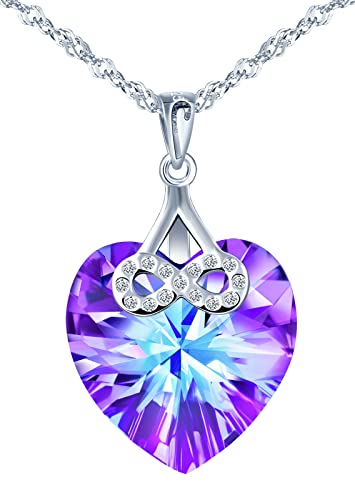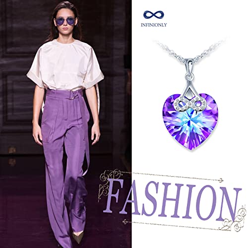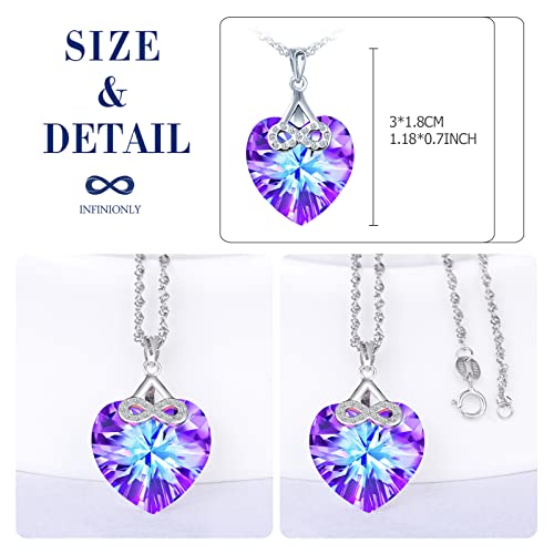 INFINIONLY Collana cuore di cristallo da donna e ragazza, Collana in argento 925, Ciondolo cuore, Pendente in cristallo cuore dell'Oceano, con mini simbolo dell'infinito, catena da 45cm, viola chiaro