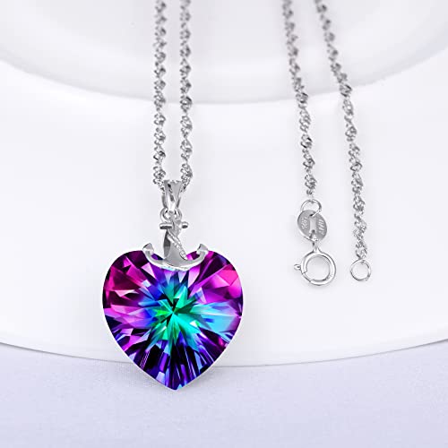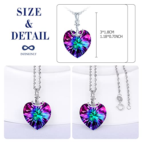 INFINIONLY Collana cuore di cristallo da donna e ragazza, Collana in argento 925, Ciondolo cuore, Pendente in cristallo cuore dell'Oceano, con mini ancora, con zircone, catena da 45cm, colorato