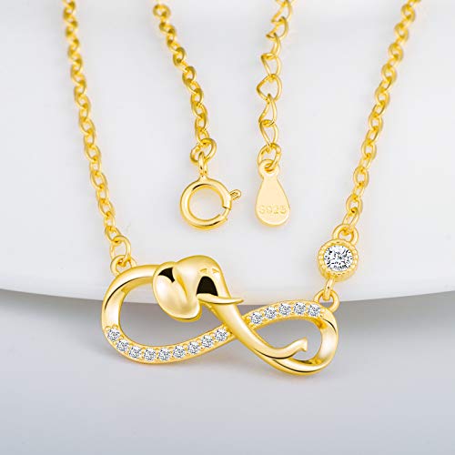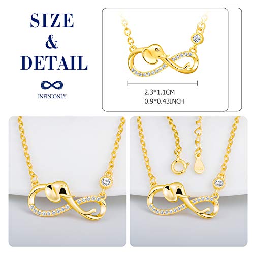 INFINIONLY Collana da donna ragazza, Parure di gioielli Collana in argento sterling 925, collane ciondolo simbolo dell'infinito e elefante, intarsio in zirconio, oro
