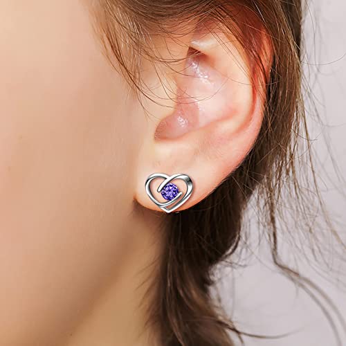 INFINIONLY Orecchini Cuore da donna ragazza, Orecchini in argento 925, Orecchini cuore diamanti, Eleganti orecchini con zircone lucidi, Processo di taglio perfetto, viola