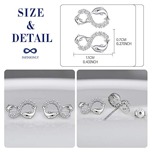 INFINIONLY - Orecchini da donna in argento Sterling con simbolo dell'infinito, a forma di delfino, con zirconi, regalo per Natale, compleanno, San Valentino e Argento