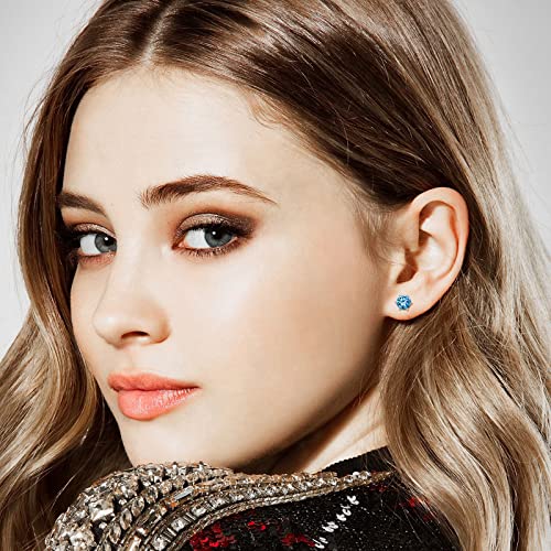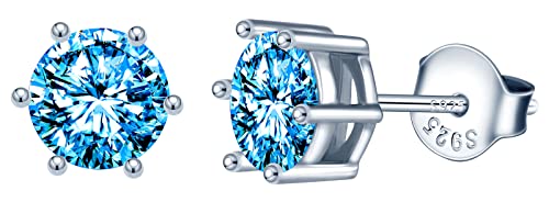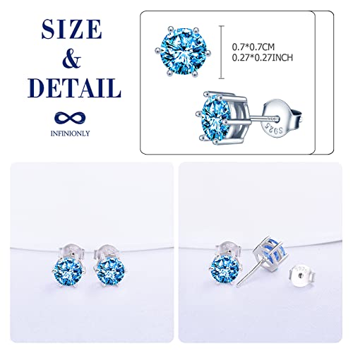 INFINIONLY Orecchini da donna ragazza, Orecchini in argento 925, Orecchini solitari 6 griffe, Eleganti orecchini con zircone lucidi, diametro gemma 0.7cm, Processo di taglio perfetto, azzurro